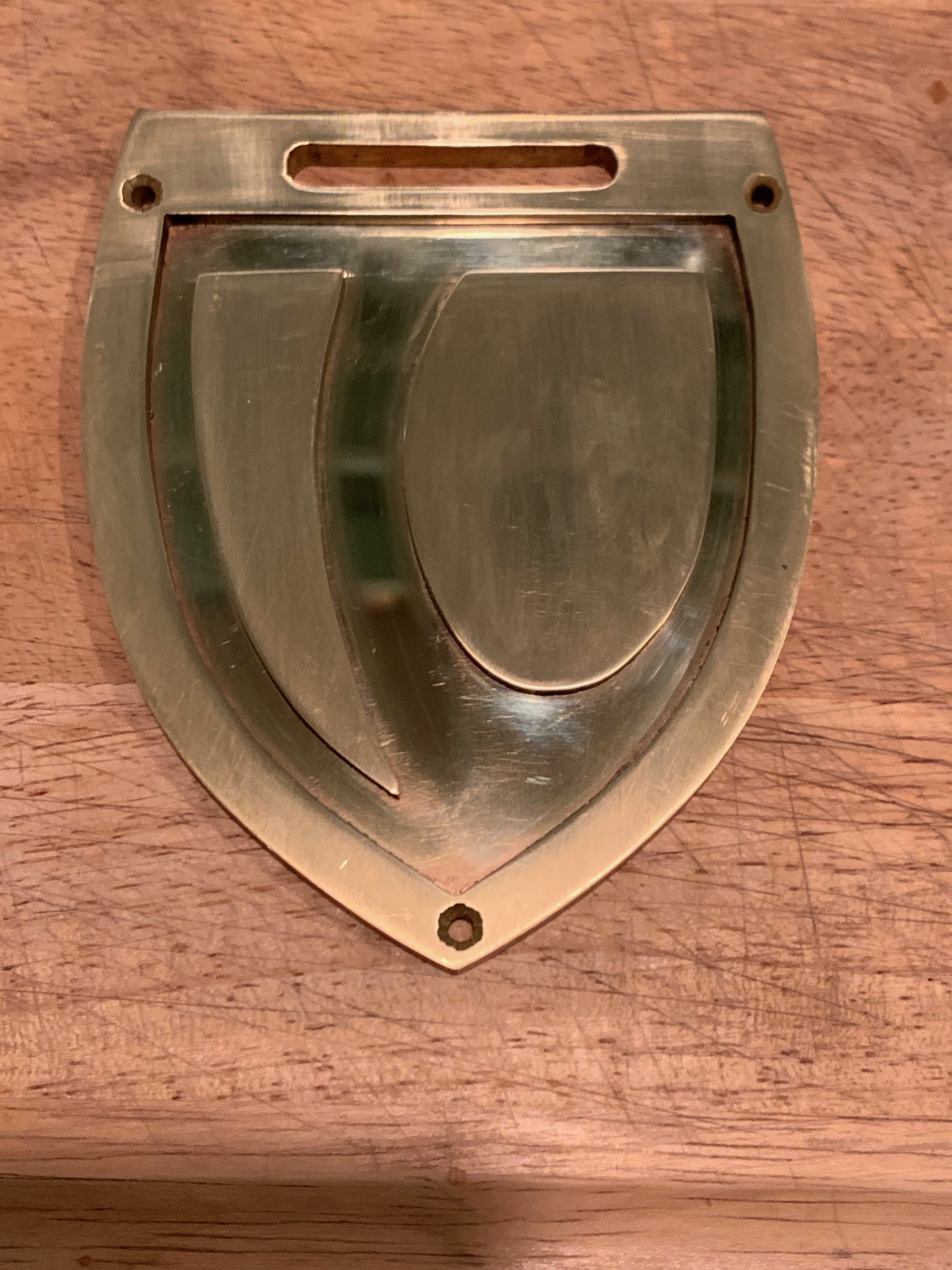 This brass plate was commissioned by a man with a very specific problem. He owned a sailboat with a companionway hatch that is secured by a padlock. The motion of the boat as it rocked on its mooring caused the padlock to rub up against the teak batten. The lock was slowly damaging the wood. I was asked to fabricate a piece of brass to sit between the lock and the wood. He also wanted the boat manufacturer’s logo included. After settling on a concept, I verified the fix with a 3D printed mockup and moved onto fabrication. The construction was done by sandwiching solder and flux between the two layers of brass. The top layer is the logo and the bottom layer is the ground. To accentuate the difference between the layers, the whole piece was polished to a mirror finish and then the top layer was knocked down to a brushed finished. I then clamped the two pieces together and heated them until the solder fused the two layers together. Since the installation, the piece has weathered in the salty environment and works perfectly.